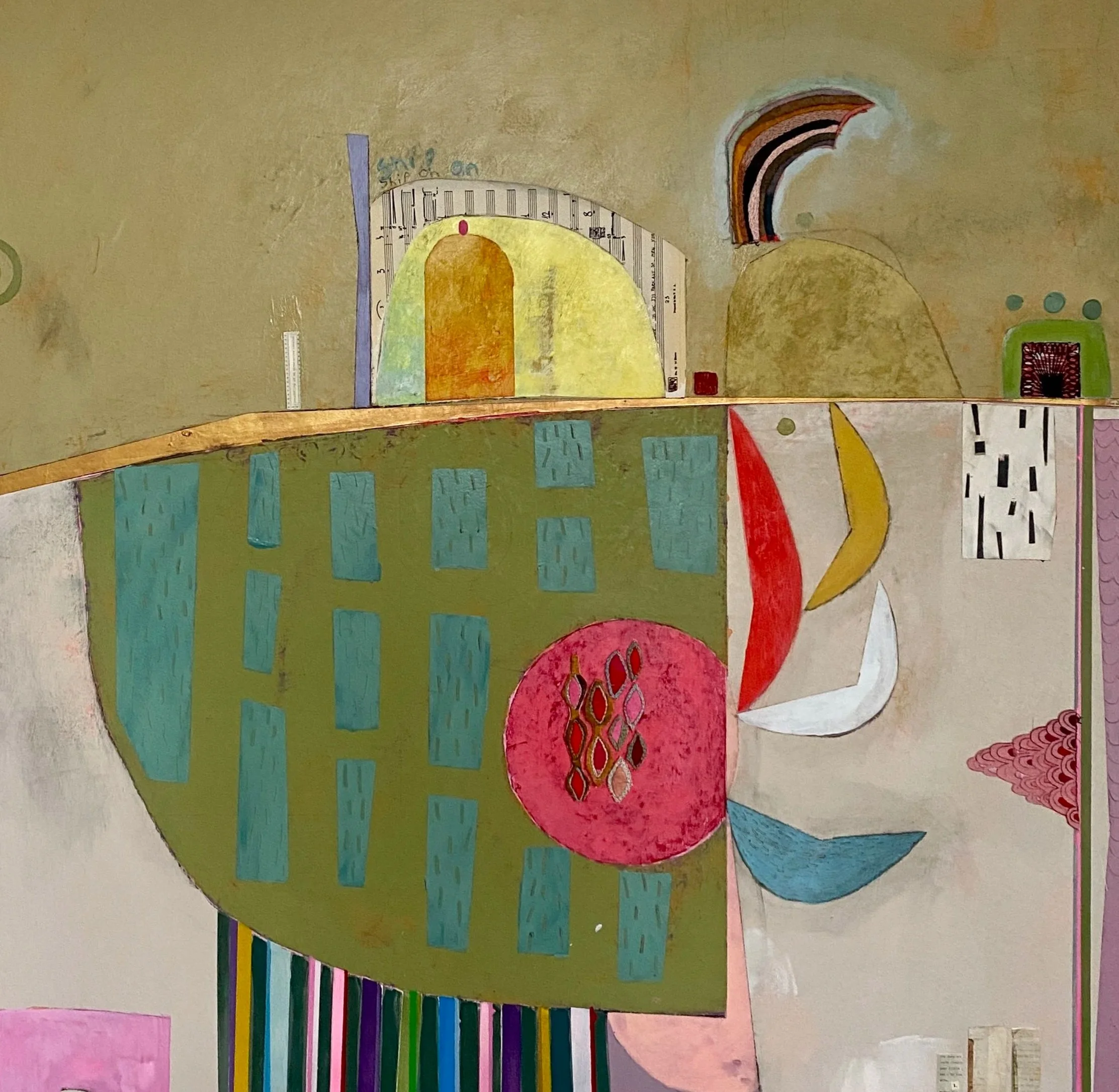 Mixed Media usually acrylic paint, embroidery, and found objects on canvas or wood. Each piece may be accompanied by a poem.